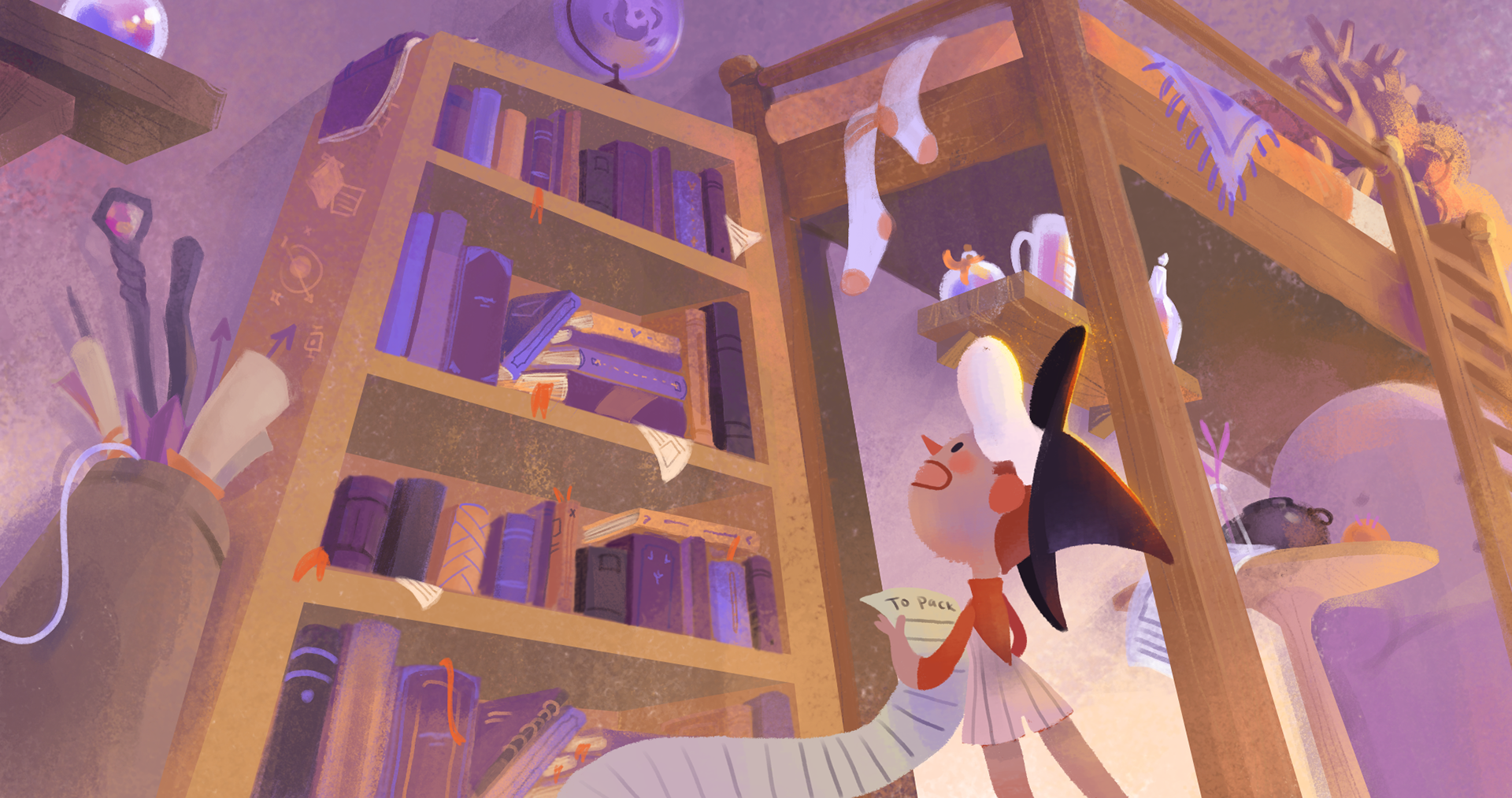 When Ruth the House Witch decides she must begin her life’s journey, she can’t seem to decide what to pack. As books and potions pile up, Ruth starts to wonder, will she ever be able to leave?